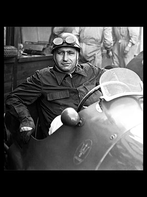Stories about Juan Manuel Fangio, the one of the greatest Formula One drivers ever, are pretty well-trod at this point. Many consider Juan Manuel Fangio to be the greatest driver of all time. Read on to learn more about l'art et l'automobile's spectacular collection of Fangio art, photos and memorabilia, and for links to great articles detailing this legendary figure.