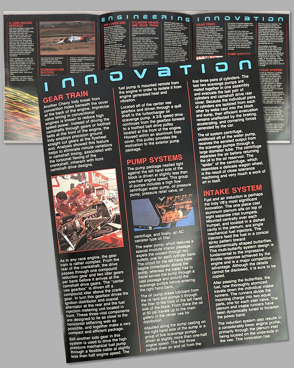 For the new engine that came out in 1986 to adapt better to both oval and road racing circuits in the CART series, used in the Lola, March and Penske chassis, cast aluminum with black finish, 20.75” x 7.75” x 1” thick, includes brochure about the engine, A- cond. (fading finish). Lot of 2