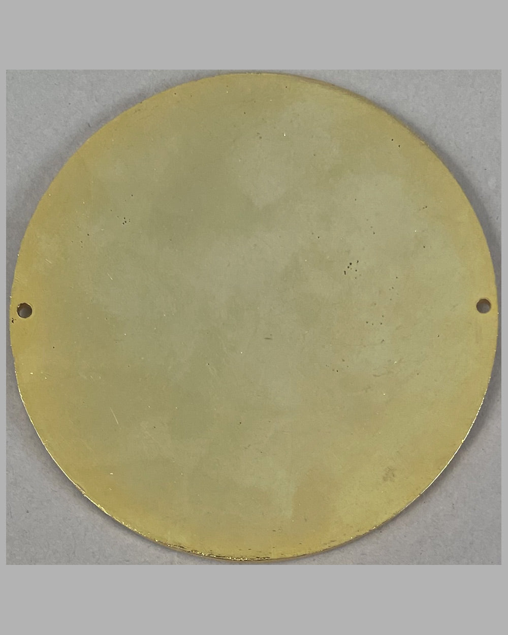 For this club created in 1953, gold plated brass and enamel, 3.5” diameter, A- cond. (flaws in right side).
